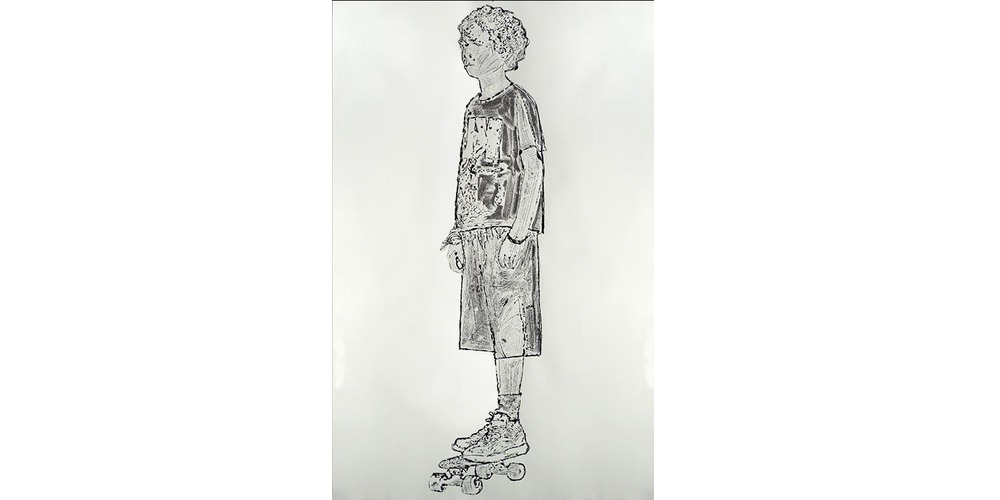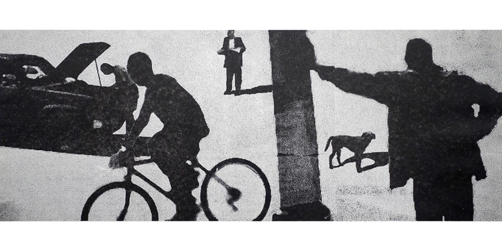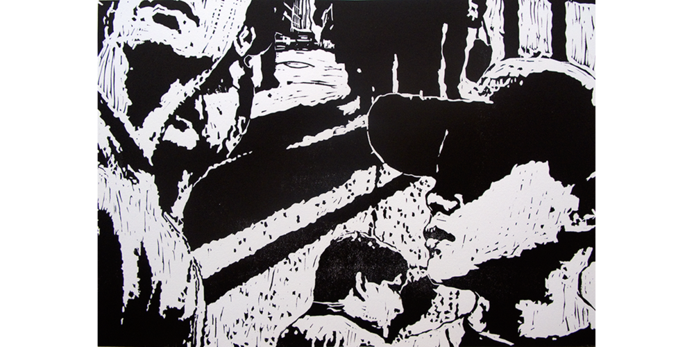 Sidewalk shadows, linoleum block print, 15 x 22in., 1997